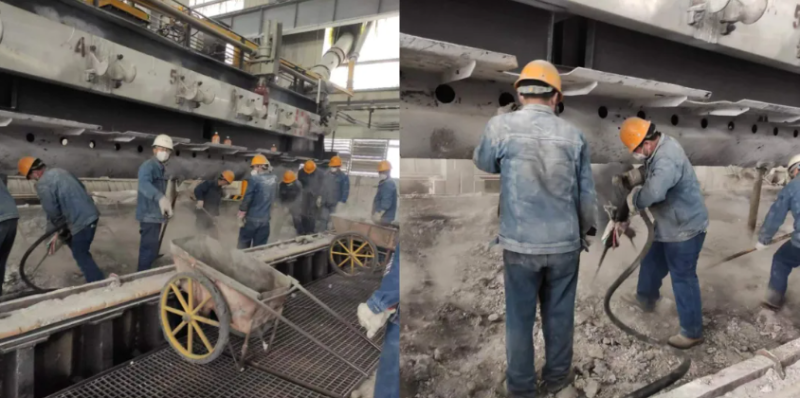 電解槽大修如同外科手術(shù),需在有限停槽期內(nèi)完成數(shù)個(gè)部件的拆解、檢測(cè)與更換。延誤一天,意味著效益的損失。為搶進(jìn)度,電解車間將人員分成四班倒,可實(shí)際干起來,所有人都不約而同選擇了“連軸轉(zhuǎn)”。技術(shù)員小王剛下白班,見夜班人手緊張,抓起手套又鉆進(jìn)了槽底:“早一天啟動(dòng),就能多增加1噸多的鋁液!”槽頂排風(fēng)機(jī)的嗡鳴聲中,安全員老周扯著嗓門喊:“防護(hù)面罩戴緊!粉塵吸進(jìn)肺里要命!”他手里的強(qiáng)光手電掃過槽底,光束里翻騰的塵埃像一場(chǎng)無聲的雪暴。十幾米長(zhǎng)的電解槽如同被解剖的巨獸,槽殼敞露,陰極鋼棒上斑駁的電解質(zhì)結(jié)痂仿佛鱗片,記錄著它連續(xù)運(yùn)轉(zhuǎn)10多年的疲憊。這是大修的關(guān)鍵戰(zhàn)役—— 7天內(nèi),必須讓電解槽“復(fù)活”。